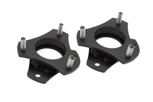 Description: Suspension Strut Spacer Leveling Kit Black 2.5 in. Lift Front For Tire Size 32 in. W/ Bump Stops Wheel Alignment Needed Easy Install Kit