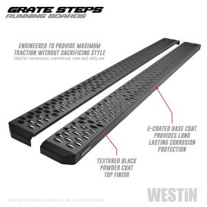 Description: Grate Steps Running Boards Textured Black 68 in. Mount Kit Not Included