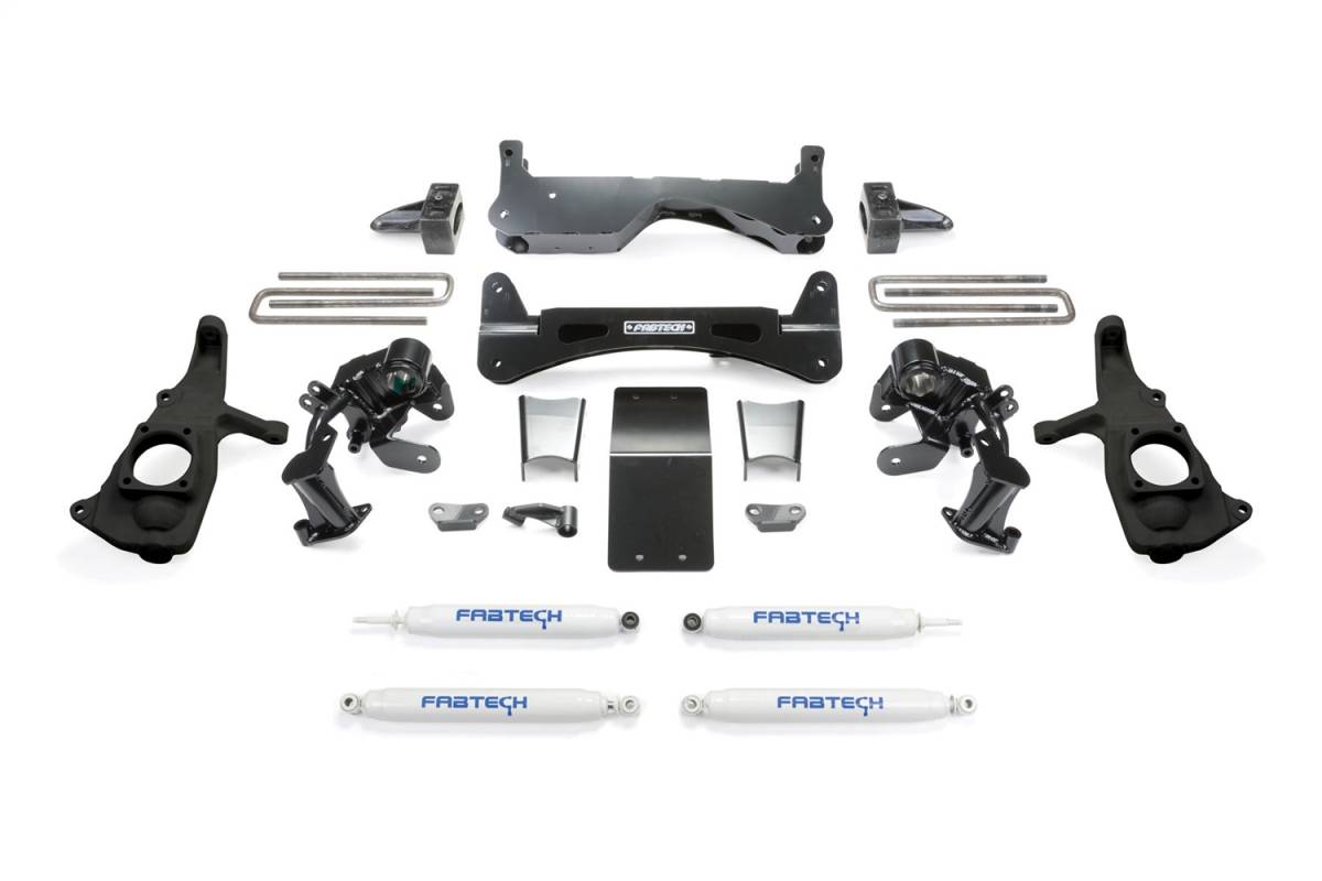 Fabtechs cutting edge RTS(TM) system has now been developed for the all new GM HD platform. The 6 RTS(TM) utilizes a patent pending bracket system that keep the torsion bars raised up, in the stock location. This feature provides superior ground clearance at the frame as there are no torsion bars hanging down to become high centered on or damaged when offroading.. The 6 RTS(TM) system has been designed with unitized bracketry to retain the four front compression stops of the vehicle as GM intended. This distributes impact loads across a wide section of the frame rather than at a single point.High arched crossmembers and front differential skid plate are constructed of 1/4 thick steel to resist bending from hard front suspension impacts. Only 1/4 thick steel provides the rigidity and strength necessary to relocate the torsion bars, bump stops and lower control arms properly. Minimal heavy duty bracketry allow for a fast installation time with only two holes to drill and no cutting of the front diff housing. The 6 RTS(TM) system allows the use of both 18 and 20 diameter wheels.