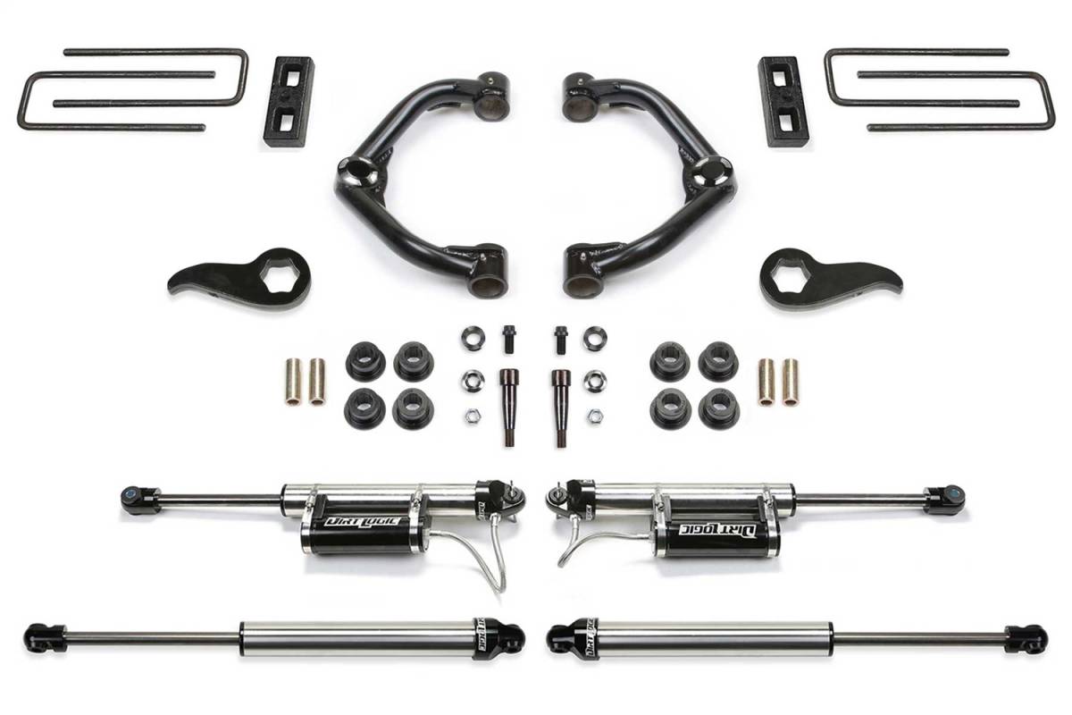 Obtain increased wheel travel and mild lift height with this heavy duty Upper Control Arm system. The tubular Upper Control Arms feature 1.25 OD. .120 wall thick chromoly tube construction with 1 diameter Stainless Steel Uniballs that attach to the factory spindle without drilling. These heavy duty UCAs have been designed to work in conjunction with Fabtechs legendary Dirt Logic 2.5 Coilover shocks for a complete front suspension system upgrade. The F150s offroad suspension performance will be greatly enhanced due to the extensive ride tuning of the stainless steel Dirt Logic 2.5 Coilovers and rear Dirt Logic 2.25s.
