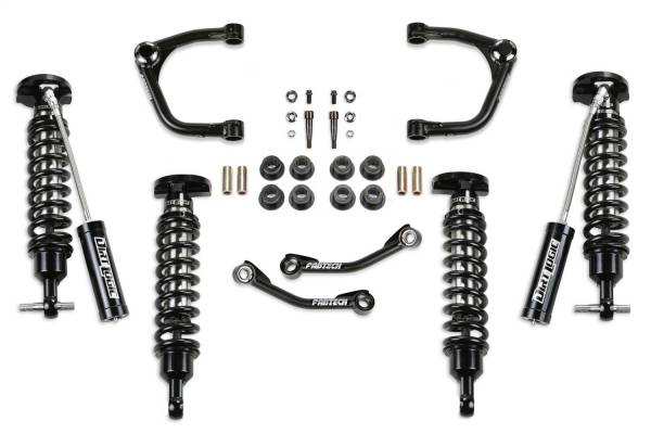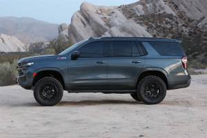 This high quality suspension has been designed to upgrade GM 1500 SUV's with standard suspension for increased strength and a balanced compliant ride for both on and offroad. The front suspension receives Fabtech's heavy duty Uniball Upper Control Arms and Dirt Logic 2.5 Coilover shocks. The Fabtech arms are vastly superior to the stock arms providing strength and longevity to the vehicle. They are constructed of 1.25" OD, .120" wall chromoly tubing with 1" FK Stainless PTFE lined Uniballs that attach to the factory GM steering knuckle without drilling. The replacement UCA's have been designed to work in conjunction with Fabtech's Stainless Steel Dirt Logic 2.5 Coilover shocks for a complete front suspension system upgrade. The Dirt Logic 2.5 Coilovers feature cold wound coil springs for a smooth ride with the ability to tackle aggressive offroad terrain. The rear receives extended length upper link arms to allow for increased travel without bind. The geometry of these links provides the proper alignment to the rear independent suspension with the new ride height. As with the front, the rear also receives stainless steel Dirt Logic 2.5 Coilover shocks for a superior ride quality. This 3" lift kit system is perfect for those that want increased suspension performance with a low lift height. A great choice for daily drivers that overland and hit the trails on weekends.