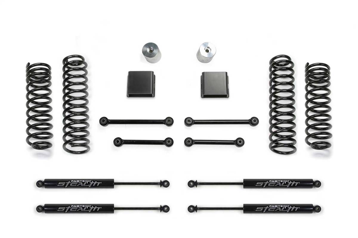 The Sport II Lift kit is Fabtech's most popular Gladiator lift kit that provides an increased ride height for the Mojave edition at a great price. Installation is easy and can be installed in a couple hours.The Sport II features American made front and rear coil springs that are a dual rate design allowing extended suspension travel for offroad use while providing a smooth highway ride. The first stage of the spring provides a soft ride with the ability to extend for additional travel. The second stage is designed to handle the payload of the Gladiator and address large impact absorption at higher speeds.The heart of the factory Jeep Mojave suspension is the Fox 2.5 Internal Bypass shocks. This Fabtech lift kit retains those shocks with heavy duty extension brackets that are designed for rugged offroad use. The Fox hydraulic bump stops are also retained and the bump stop pads are relocated to work in conjunction with the new ride height for proper suspension travel operation. Fabtech includes extended length front and rear sway bar links with urethane bushings to reposition the bars to work within the factory operating planes. By extending the length of the links, it prevents the sway bar from going over center and creating bind at full extension travel. This Gladiator Mojave lift kit is a great choice for the Jeep enthusiast that wants to retain the factory Fox Shocks with a slight height increase to run 37" tall tires.