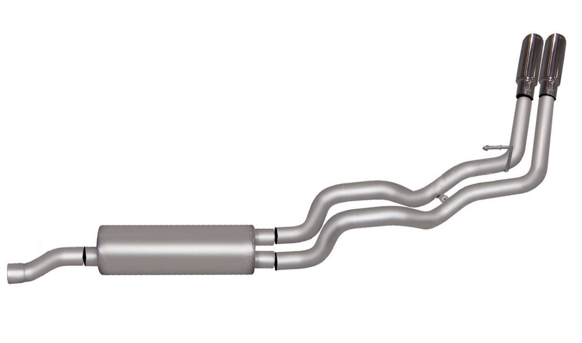 If you're looking to add a little style to your Truck or SUV and want to keep the exhaust from affecting your tow trailer, this Dual Cat back Exhaust System is for you, exiting behind the rear tire for a look that sets your vehicle apart on the street or in the dirt. Hassle free, bolt-on installation with professional looking results. No welding required. Backed by a Lifetime Limited Warranty. Gibson Dual Sport Exhaust System offers a powerful authoritative deep exhaust tone with no annoying noise inside the cab. Dyno tested to assure increased horsepower and produce more torque. Average horsepower gains are 10-15 and 15-20lb-ft of increase torque.