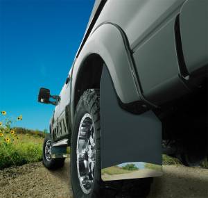 Protect your truck with the Husky Liners Universal Mud Flaps. Made from a durable AntiSpray material with 14 gauge laser-cut Stainless Steel anchor weights our Mud Flaps protect your ride from the rage of the road.