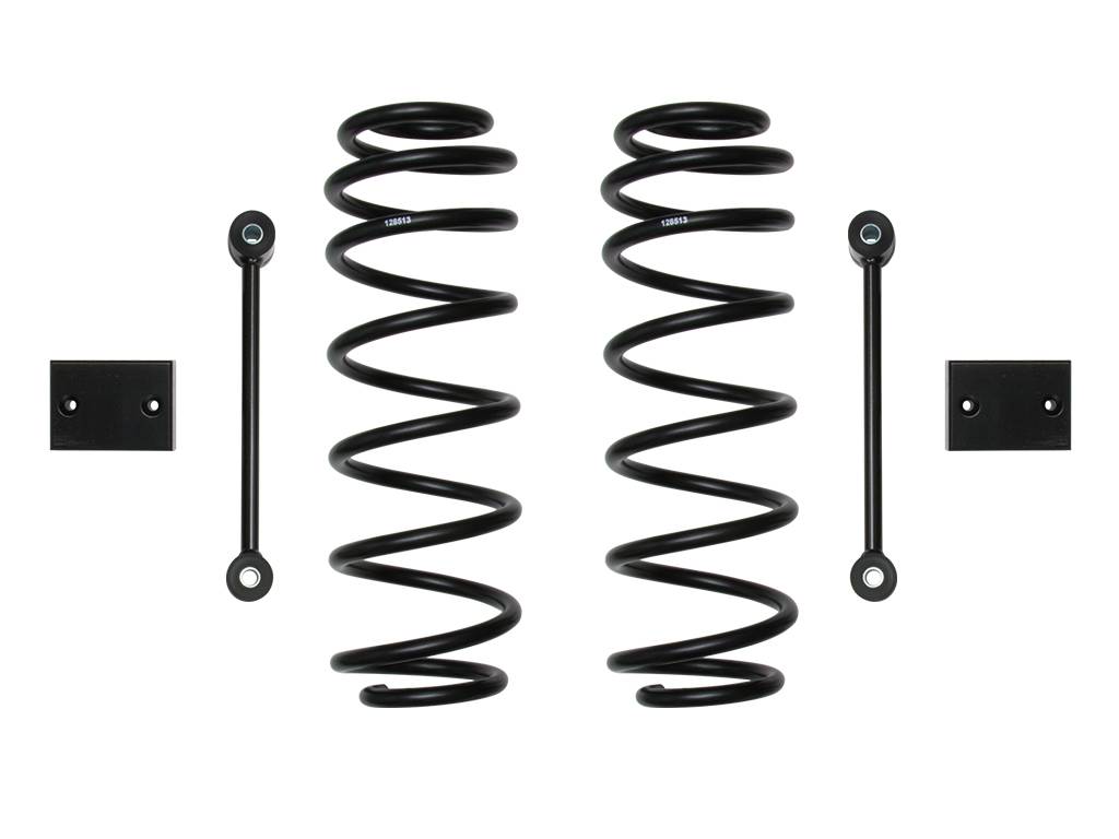 The ICON Vehicle Dynamics 2018-UP Jeep Wrangler JL 2.5" coil springs are designed for drivers demanding the ultimate in performance and ride quality, while allowing for increased wheel travel (when used with ICON shocks) and the fitment of larger tires. The ICON Jeep Wrangler JL coil springs provide 2.5" of lift height (based on a factory equipped 4-door Rubicon JL) and feature a dual rate design. The dual rate design allows for a softer initial rate for superb on road comfort and a firmer secondary rate that increases during compression for excellent bottoming resistance and off-road performance. Like all ICON coil springs, they feature a lifetime guarantee against sagging/breakage to produce confidence in knowing that you have the best suspension products available for the 2018-UP Jeep JL Wrangler.