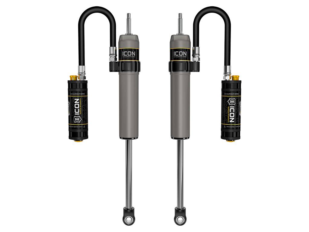 ICON Vehicle Specific (V.S.) 2.5 Aluminum Series shocks are designed and built to give your vehicle outstanding performance off-road and a smooth ride on the street. These shocks are configured specifically for each application in both length and damping tune. Like all ICON'S Shock Absorbers, V.S. 2.5 Aluminum Series shocks are fully rebuildable and re-tunable. For piggyback and specific remote reservoir applications, ICON'S unique use of a 6061-billet aluminum manifold a few inches below the top cap of the shock creates an internal Bump Zone that when used creates an additional 20% of damping force. This additional force helps prevent harsh bottom outs and controls the suspension when compressing at high velocity. The ICON CDC Valve is an externally adjustable valve that restricts oil flow into the reservoir which creates 10 levels of compression damping force ranges.