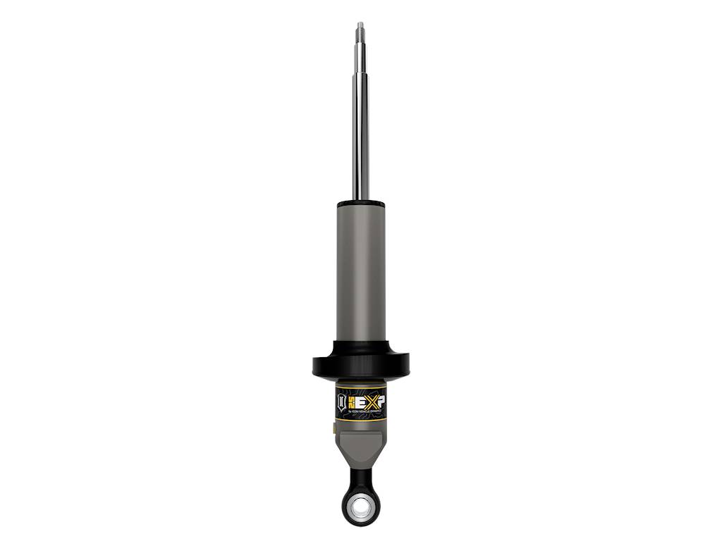 The 2022-Up Toyota Tundra EXP Series front shock absorbers by ICON Vehicle Dynamics combine the performance of a fully rebuildable 2.5-inch diameter premium shock absorber with the convenience and cost-benefits of re-using the Tundra’s factory coil spring and other components. EXP bridges the gap between spacer lifts and threaded bodied coilovers, providing suspension lift, custom-tuned performance and maximum travel, all in an economical package.