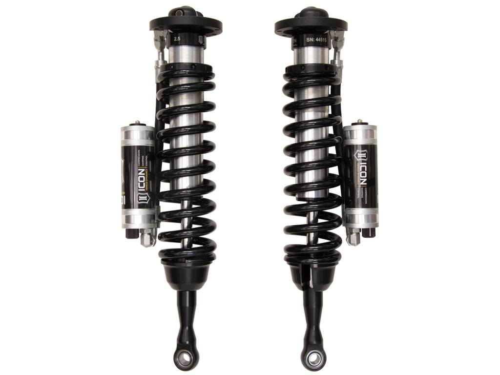 The ICON Vehicle Dynamics V.S. Series 2.5” remote reservoir coilover shocks w/ CDCV are an incredible upgrade for the front end of the 2008-Up Toyota Land Cruiser 200 Series. ICON’s Vehicle-specific valving provides a sport tuned feel on and off-road while offering 1.5-3.5” of lift height adjustability for use of larger, more aggressive wheel and tire combinations. ICON's larger 2.5” shock body and increased piston area over stock components provides improved damping ability and outstanding ride characteristics across varying types of terrain. Remote reservoir ensure optimum performance by increasing the duration of consistent damping regardless of situation, keeping the shocks at a cooler operating temperature during heavy use. The ICON CDC Valve upgrade is included for those desiring an easy way to tune the ride externally with 10 settings from soft to hard. When paired with ICON rear 2.5 Series shocks, vehicle control will be balanced front to rear resulting in the best overall driving experience for your Land Cruiser 200 Series.