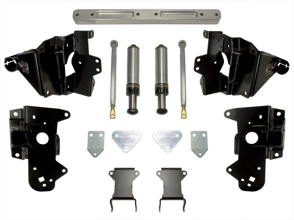 Our resulting dynamic system is one that is soft and compliant allowing full suspension travel at slow speeds, yet at high speeds will create very high forces to resist bottoming out. ICON's Ford Raptor hydraulic bumpstop system uses a 2.5" travel air bump allowing the shock additional distance to control energy, and does not interfere with suspension travel under normal driving conditions. The clamshell bracket design with triangulated cross braces not only gives a rigid mounting point for the air bump, it helps support a known weak part of the frame prone to failure.