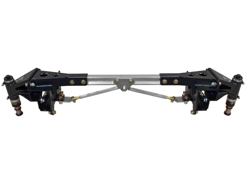 Cross member and tension rods stabilize frame rails and prevent twisting under hard impacts