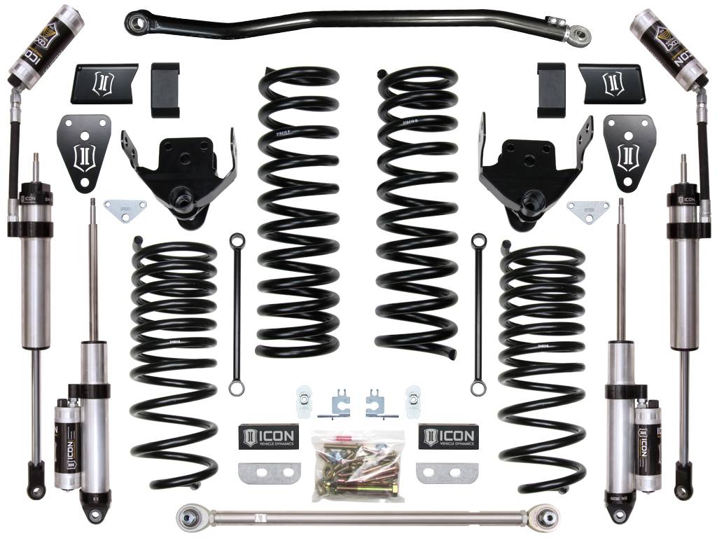 ICON Vehicle Dynamics suspension systems for the 2014-2018 Ram 2500 4WD were designed with exceptional performance and ride quality in mind. This Stage 3 system includes ICON-engineered 4.5” dual rate coil springs, high-strength laser cut bracketry, billet bump stop spacers, fabricated rear coil spacers, and all hardware necessary for a complete install. Vehicle-specific ICON 2.5 Aluminum Series remote reservoir shocks help deliver balanced performance front to rear, while CDC (Compression Damping Control) Valve technology allows the user to adjust compression characteristics of the shocks with the turn of a knob. These features make this Stage 3 system a huge upgrade for 2014-2018 Ram 2500 4WD trucks that are not only used for daily driving and towing, but spirited off-road driving as well.