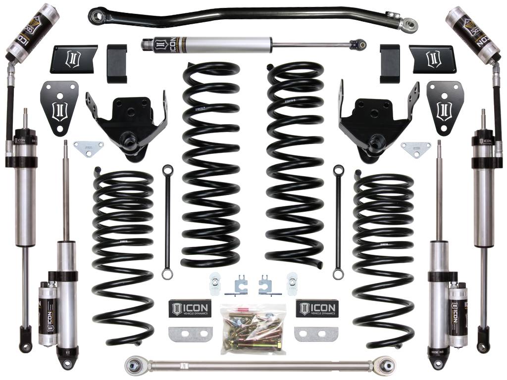 ICON Vehicle Dynamics suspension systems for the 2014-2018 Ram 2500 4WD were designed with exceptional performance and ride quality in mind. This Stage 4 system includes ICON-engineered 4.5” dual rate coil springs, high-strength laser cut bracketry, billet bump stop spacers, fabricated rear coil spacers, and all hardware necessary for a complete install. Vehicle-specific ICON 2.5 Aluminum Series remote reservoir shocks help deliver balanced performance front to rear, while CDC (Compression Damping Control) Valve technology allows the user to adjust compression characteristics of the shocks with the turn of a knob. These features make this Stage 4 system a huge upgrade for 2014-2018 Ram 2500 4WD trucks that are in need of a comfortable on-road ride, but also require the ability to be used to their full potential during spirited off-road driving.