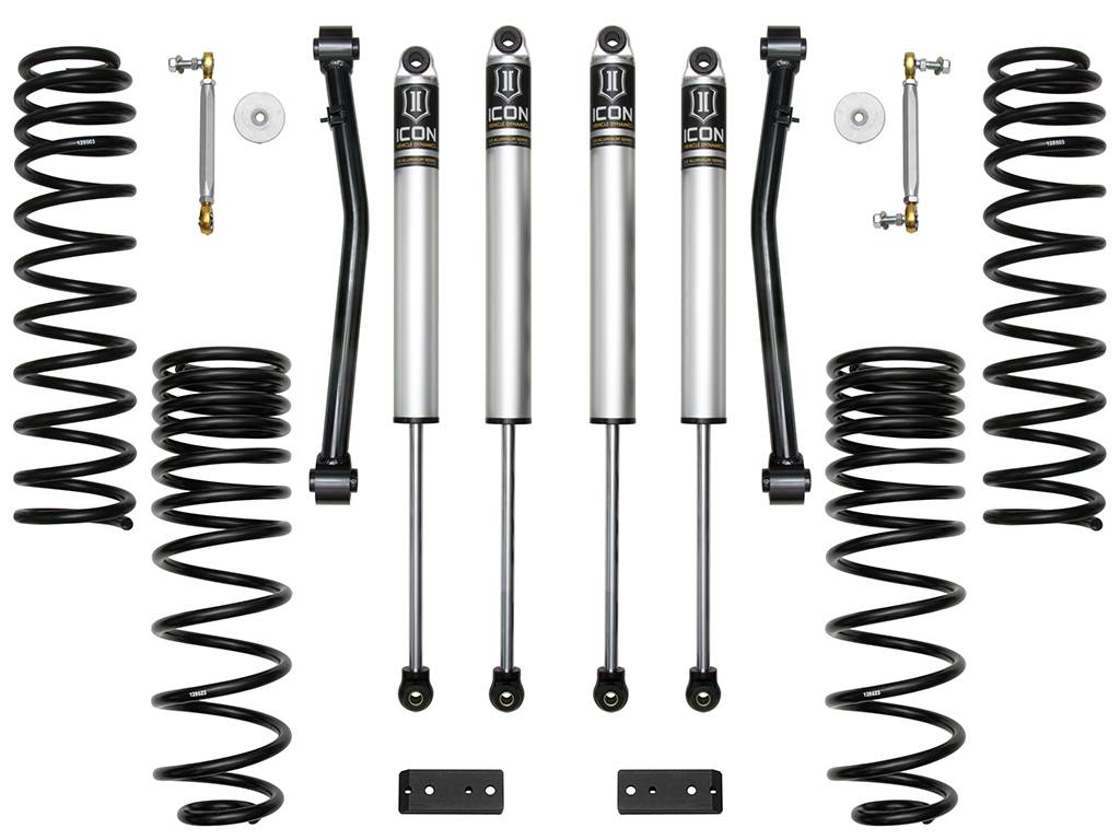 The Stage 3 ICON 2.5” Suspension System for the Jeep Gladiator is the ideal setup for significantly improving on-road ride quality for the daily driven application that will see occasional moderate off-road use. This complete suspension system features 2.0 Aluminum Series shocks, 2.5” lift dual-rate front coil springs, a tubular steel fixed front lower link kit, billet front sway bar links, a triple-rate rear coil spring kit, a rear sway bar relocation kit, and all necessary hardware for install. This system provides an increase of over 30% front and 20% rear wheel travel and was designed around the use of a 35” tire. For those looking to run a 37” tire this can be achieved with the ICON Jeep JT Bump Stop Spacer Kit (Part #22071).