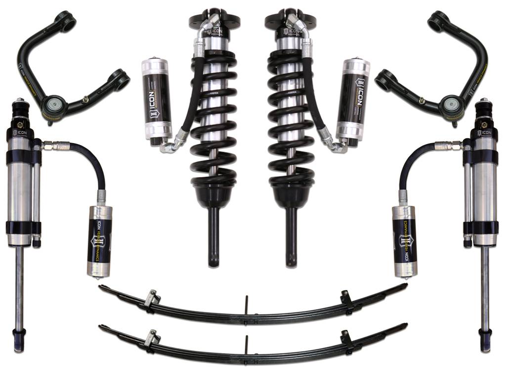 ICON Vehicle Dynamics 2005-UP Toyota Tacoma suspension systems are designed with maximum performance and the serious driver in mind. ICON engineers’ primary focus is to increase wheel travel and damping ability, which translates into outstanding vehicle control and ride quality both on and off-road. The Stage 7 system includes vehicle-specific tuned 2.5 Series Extended Travel coilover shocks equipped with ICON's CDC (Compression Damping Control) Valve. The easy-to-adjust CDC Valve allows for end-user compression changes to provide optimal ride quality across all types of terrain and vehicle cargo configurations. In addition, these 2.5 Series coilovers feature remote reservoirs for exceptional cooling properties, ICON-engineered Eibach coil springs for superior vehicle “feel” through the range of travel, and are height adjustable from 0-3.5” of lift over stock on 2005-2015 models or 0-2.75” on 2016-UP models allowing the use of larger, more aggressive wheel and tire combinations. When used with an ICON upper control arm, these extended travel coilovers add increased droop travel to the front suspension. 2.5 Series Omega Bypass rear shocks combine vehicle-specific valving with compression and rebound adjustment giving end-users ultimate control of performance and ride quality. The ICON Vehicle Dynamics Stage 7 suspension system is an excellent choice for those drivers looking to drastically enhance the capabilities of their 2005-UP Toyota Tacoma 4WD/PreRunner on the road as well as in the dirt.
