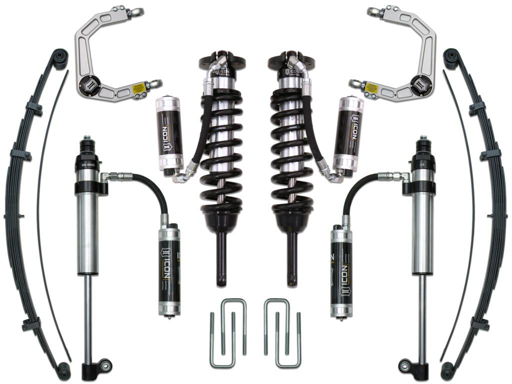 ICON Vehicle Dynamics 2005-UP Toyota Tacoma suspension systems are designed with maximum performance and the serious driver in mind. Throughout the development of these systems ICON engineers’ primary focus is to increase wheel travel and damping ability, which translates into outstanding vehicle control and ride quality both on and off-road. This Stage 9 system goes a step further in delivering ICON performance to the Tacoma with the addition of rear suspension components that include an ICON RXT multi-rate leaf spring and a unique RXT-specific 2.5 Series shock.