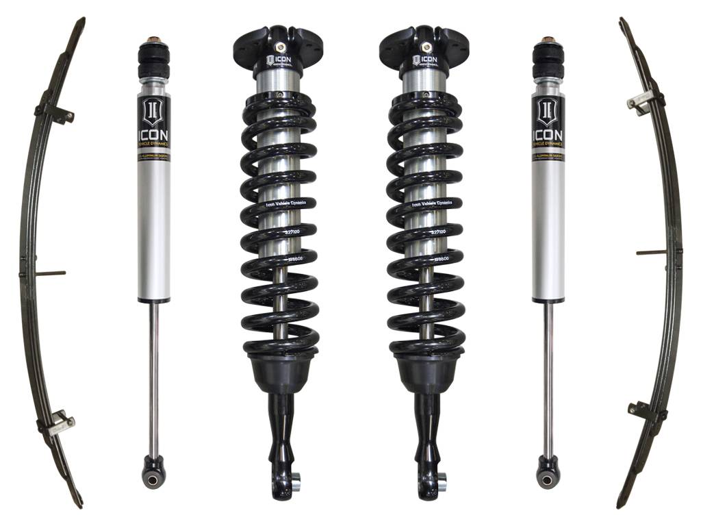 ICON Vehicle Dynamics Toyota Tundra Stage 2 suspension systems are designed with maximum performance and the serious driver in mind. ICON engineers’ primary focus is to increase wheel travel and damping ability, which translates into outstanding vehicle control and ride quality both on and off-road. The Stage 2 system includes vehicle-specific tuned 2.5” coilover shocks featuring an internal reservoir for exceptional cooling properties. These coilovers are also height adjustable from 1-3” of lift allowing the use of larger, more aggressive wheel and tire combinations. ICON 2.0 VS Aluminum Series monotube rear shocks utilize a vehicle-specific valving and then when combined with ICON's expansion pack give you the performance of the truck from front to rear. The ICON Vehicle Dynamics 2007-2021 Toyota Tundra Stage 2 suspension system is an excellent choice for those drivers looking to enhance the capabilities of their pickup on the road as well as in the dirt.