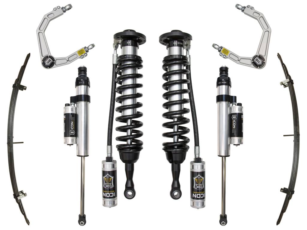 ICON Vehicle Dynamics Toyota Tundra Stage 6 suspension systems are designed with maximum performance and the serious driver in mind. ICON engineers’ primary focus is to increase wheel travel and damping ability, which translates into outstanding vehicle control and ride quality both on and off-road. The Stage 6 system includes vehicle-specific tuned 2.5” coilover shocks featuring remote reservoirs for exceptional cooling properties and includes our Compression Damping Control Valve (CDCV) for 10 clicks of tool free adjustment. These coilovers are also height adjustable from 1-3” of lift over stock, allowing the use of larger, more aggressive wheel and tire combinations. ICON 2.5 Aluminum Series rear shocks utilize our CDCV valving that makes your suspension tunable front and rear. The ICON Vehicle Dynamics 2007-2021 Toyota Tundra Stage 6 suspension system is an excellent choice for those drivers looking to tune the capabilities of their pickup on the road as well as in the dirt.