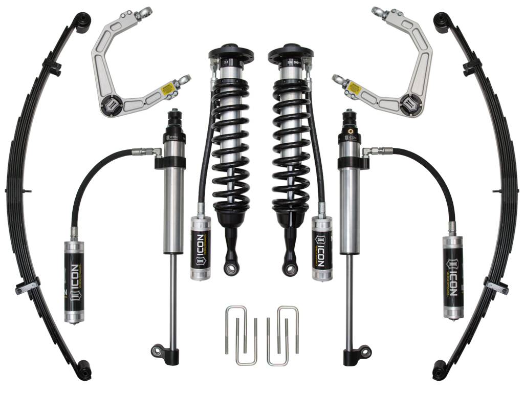 ICON Vehicle Dynamics 2007-2021 Toyota Tundra suspension systems are designed with maximum performance and the serious driver in mind. Throughout the development of these systems ICON engineers’ primary focus is to increase wheel travel and damping ability, which translates into outstanding vehicle control and ride quality both on and off-road. This Stage 8 system goes a step further in delivering ICON performance to the Tundra with the addition of rear suspension components that include an ICON RXT multi-rate leaf spring and a unique RXT-specific 2.5 Aluminum Series shock.