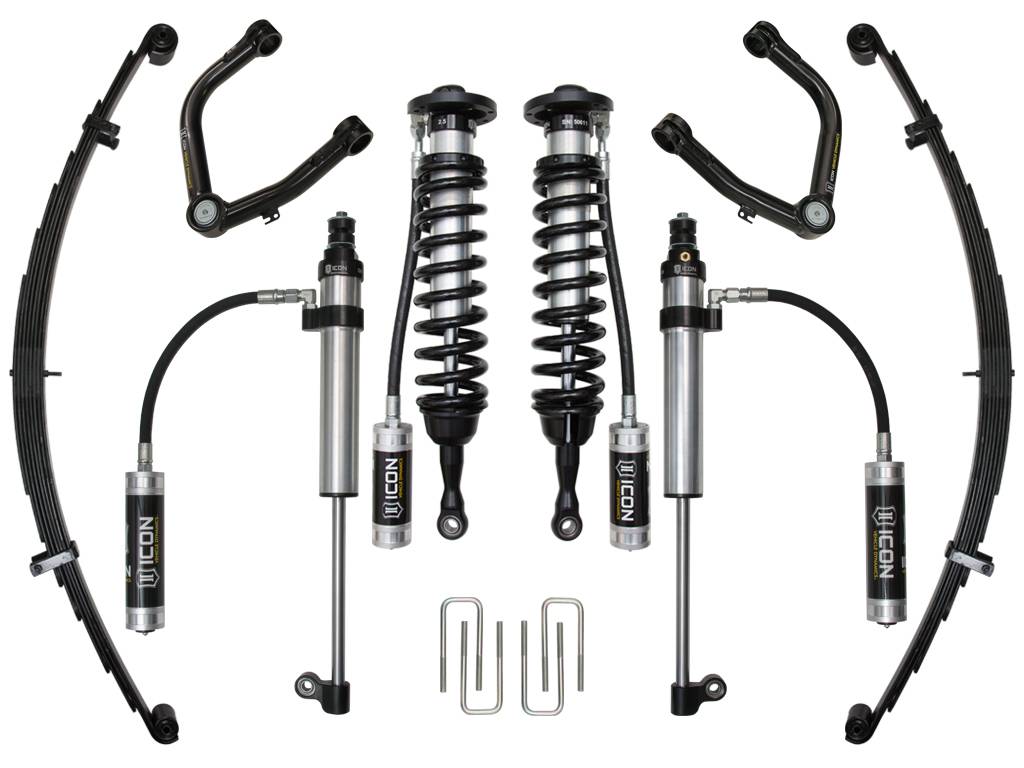 ICON Vehicle Dynamics 2007-2021 Toyota Tundra suspension systems are designed with maximum performance and the serious driver in mind. Throughout the development of these systems ICON engineers’ primary focus is to increase wheel travel and damping ability, which translates into outstanding vehicle control and ride quality both on and off-road. This Stage 8 system goes a step further in delivering ICON performance to the Tundra with the addition of rear suspension components that include an ICON RXT multi-rate leaf spring and a unique RXT-specific 2.5 Aluminum Series shock.
