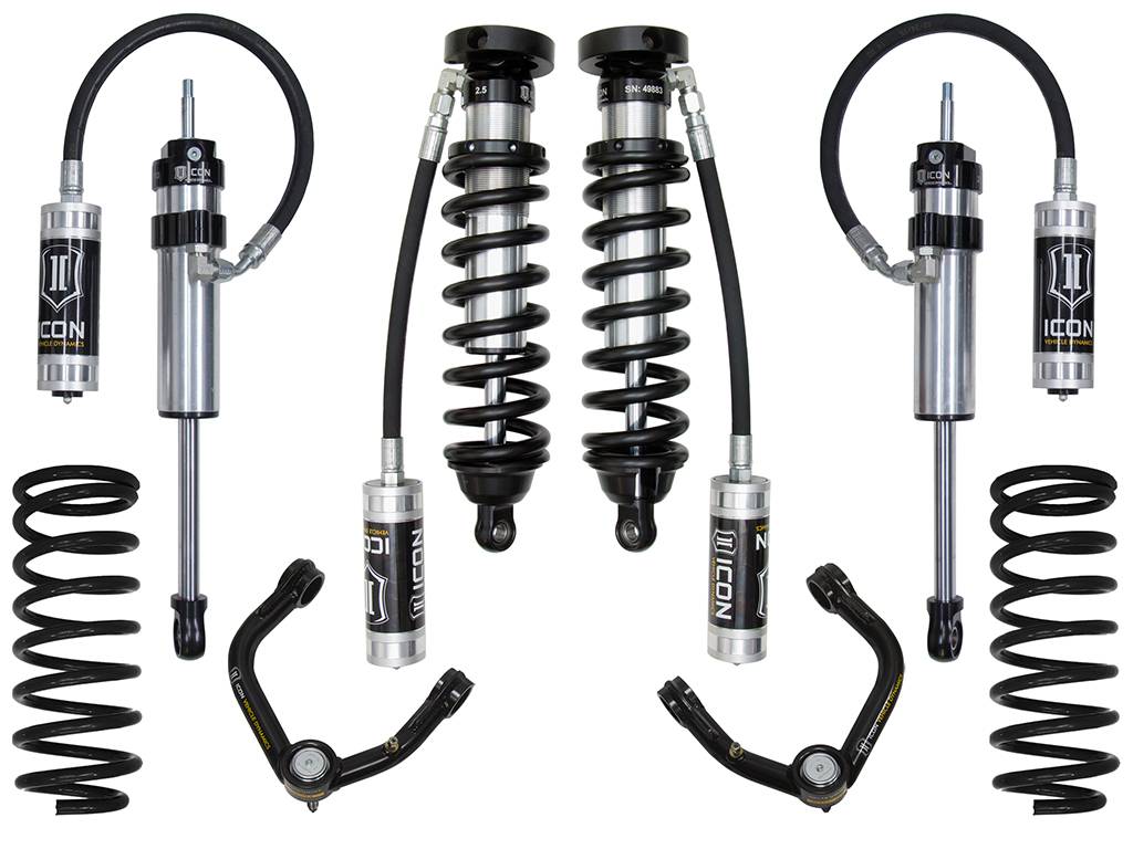 With the ICON Stage 4 suspension system on and off-road performance is significantly improved with 2.5 Series Extended Travel Remote Reservoir Coilovers and 2.5 Aluminum Series Remote Reservoir Rear Shocks that feature ICON engineered coil springs, vehicle-specific shock valving, FK Rod End bearings, and high-quality CNC-machined components for superior damping and control. The 2.5 VS Series coilovers are height adjustable from 0-3” of lift over stock, allowing the use of larger, more aggressive wheel and tire combinations. Fully serviceable shock absorbers mean that these components can be rebuilt or re-valved as necessary, providing a long service life and the ability to customize the ride quality for unique vehicle setups. The addition of an ICON tubular steel upper control arm kit provides increased wheel travel over stock while also offering alignment correction for improved overall handling. ICON engineered rear coil springs increase rear suspension performance while also providing 1" of rear end lift. ICON Vehicle Dynamics' 1996-2002 4Runner Stage 4 suspension system is an excellent choice for those drivers looking to drastically improve the performance and handling characteristics of their 3rd Gen on the road as well as in the dirt.