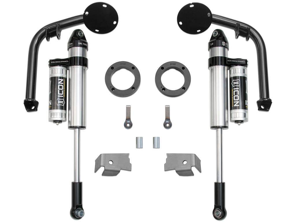 The ICON Vehicle Dynamics Stage 1 S2 Secondary Shock System redefines the off-road capability of the 2007-2021 Toyota Tundra by allowing for the installation of a secondary shock to an existing ICON coilover setup. The addition of a 2.5 Series piggyback reservoir secondary shock means rougher terrain and larger off-road obstacles can be overcome with confidence as the damping ability of the vehicle’s front suspension is effectively doubled.