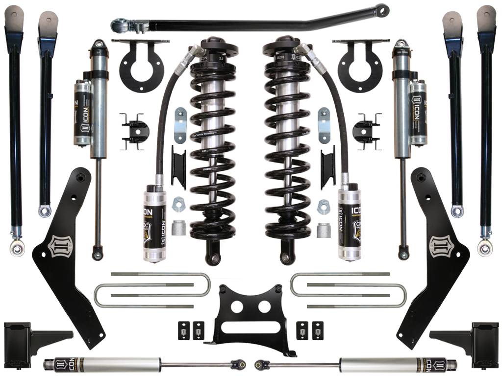 Designed to provide a height-adjustable option to the extremely popular ICON Vehicle Dynamics 4.5” Ford Super Duty Suspension Systems, these coilover conversions provide excellent on-road ride quality and off-road performance while at the same time allowing for end-user ride height adjustability.