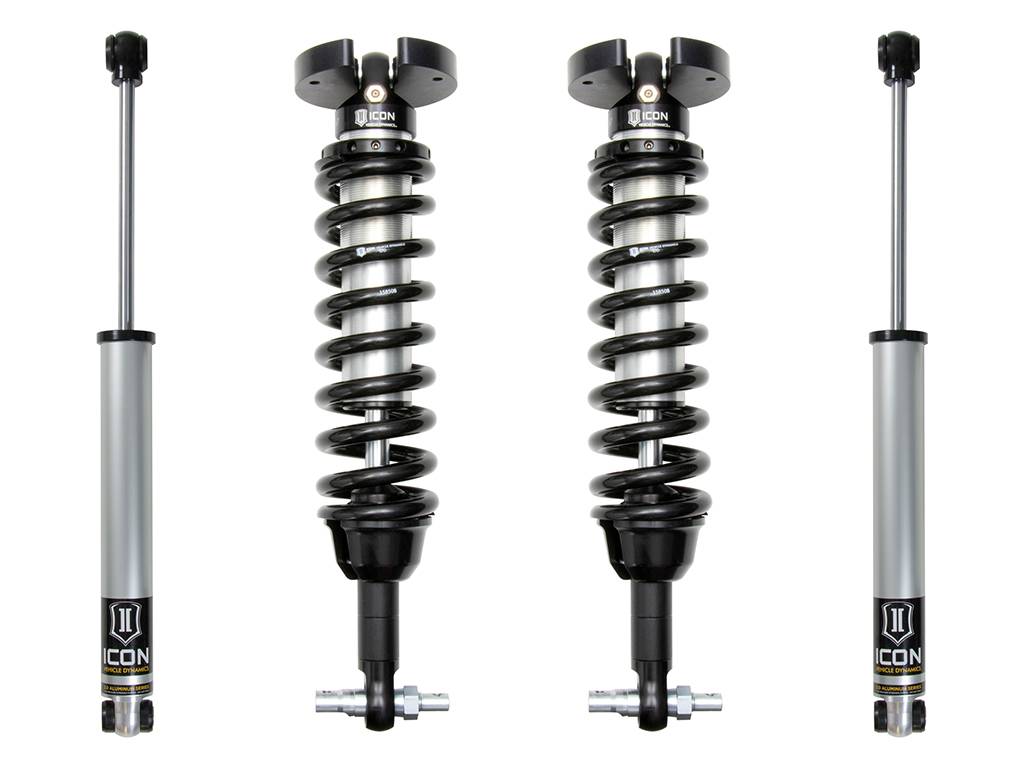 ICON Vehicle Dynamics 2019-UP GM Silverado/Sierra 1500 suspension systems are designed to dramatically increase the on and off-road ride quality. ICON engineers’ primary focus is to increase wheel travel and damping ability, which translates into outstanding vehicle control and ride quality both on and off-road. With wheel travel and ride quality in mind, ICON engineers researched each component of the GM platform’s suspension and addressed any areas where performance could be extracted. The Stage 1 system includes vehicle-specific tuned 2.5 Series coilover shocks featuring an internal reservoir for exceptional cooling properties and ICON-engineered Eibach coil springs for superior vehicle “feel” through the range of travel. These coilovers are also height adjustable from 1.5-3.5” allowing the use of larger, more aggressive wheel and tire combinations. ICON 2.0 Aluminum Series monotube rear shocks utilize a vehicle-specific valving that balances the performance of the truck from front to rear. The ICON Vehicle Dynamics 2019-UP GM Silverado/Sierra 1500 Stage 1 suspension system is an excellent choice for those drivers looking to enhance the capabilities of their pickup on the road as well as in the dirt.