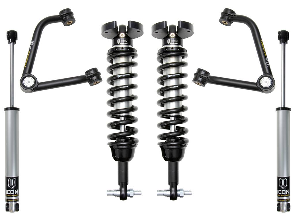 ICON Vehicle Dynamics 2019-UP GM Silverado/Sierra 1500 suspension systems are designed to dramatically increase the on and off-road ride quality. ICON engineers’ primary focus is to increase wheel travel and damping ability, which translates into outstanding vehicle control and ride quality both on and off-road. With wheel travel and ride quality in mind, ICON engineers researched each component of the GM platform’s suspension and addressed any areas where performance could be extracted. The Stage 2 system includes vehicle-specific tuned 2.5 Series coilover shocks featuring an internal reservoir for exceptional cooling properties and ICON-developed Eibach coil springs for superior vehicle “feel” through the range of travel. These coilovers are also height adjustable from 1-3” allowing the use of larger, more aggressive wheel and tire combinations. ICON 2.0 Aluminum Series remote reservoir rear shocks utilize a vehicle-specific valving that balances the performance of the truck from front to rear. The ICON Vehicle Dynamics 2019-UP GM Silverado/Sierra 1500 Stage 2 suspension system is an excellent choice for those drivers looking to enhance the capabilities of their pickup on the road as well as in the dirt.