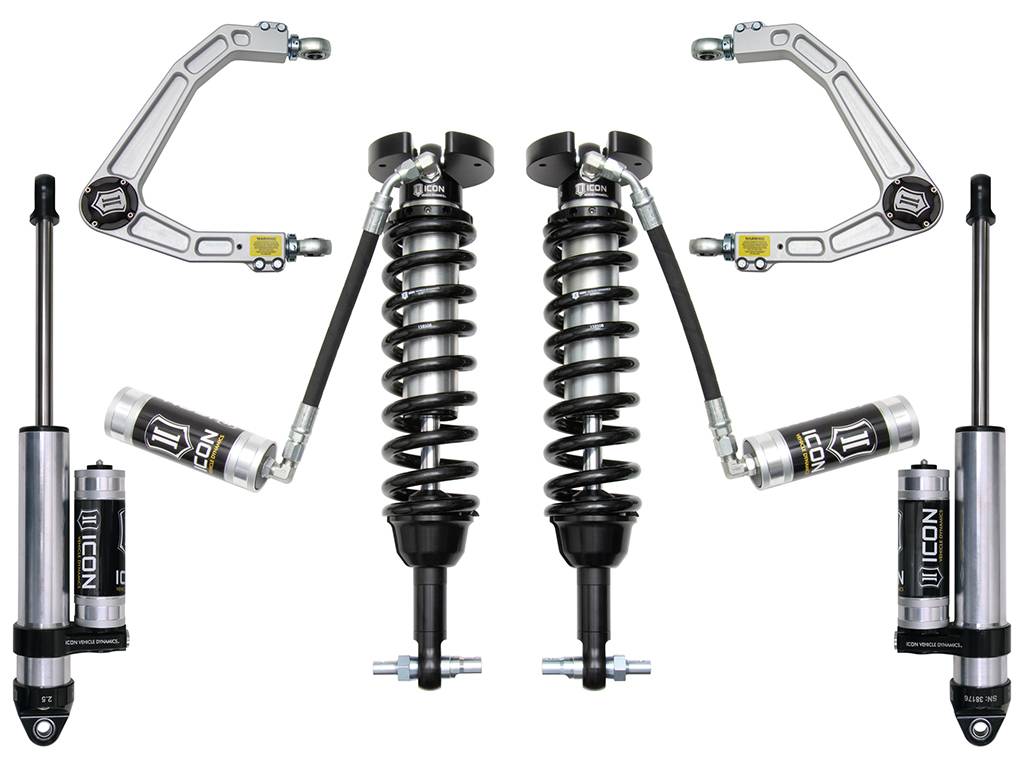 ICON Vehicle Dynamics 2019-UP GM Silverado/Sierra 1500 suspension systems are designed to dramatically increase on and off-road ride quality. ICON engineers’ primary focus is to increase wheel travel and damping ability, which translates into outstanding vehicle control and ride quality both on and off-road. With wheel travel and ride quality in mind, ICON engineers researched each component of the GM platform’s suspension and addressed any areas where performance could be extracted. The Stage 3 system includes vehicle-specific tuned 2.5 Series coilover shocks featuring a remote reservoir for exceptional cooling properties and ICON-engineered Eibach coil springs for superior vehicle “feel” through the range of travel. These coilovers are also height adjustable from 1.5-3.5” of lift over stock allowing the use of larger, more aggressive wheel and tire combinations. ICON 2.5 Aluminum Series piggyback reservoir rear shocks utilize a vehicle-specific valving that balances the performance of the truck from front to rear. The ICON Vehicle Dynamics 2019-UP GM Silverado/Sierra 1500 Stage 3 suspension system is an excellent choice for those drivers looking to enhance the capabilities of their pickup on the road as well as in the dirt.