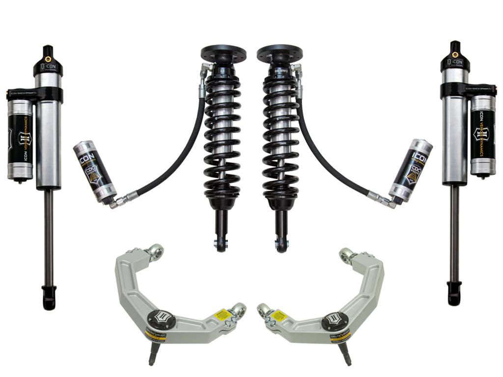 The ICON Vehicle Dynamics 2009-2013 Ford F150 2WD Stage 4 suspension system is the best choice for drivers looking to maximize the on and off-road potential of their trucks and will inspire confidence behind the wheel in nearly any situation. ICON engineers’ primary focus is to increase wheel travel and damping ability, which translates into outstanding vehicle control and ride quality both on and off-road. This system includes vehicle-specific tuned 2.5” coilover shocks featuring external remote reservoirs w/ CDCV for exceptional cooling properties and ICON-engineered Eibach coil springs for superior vehicle “feel” through the range of travel. These coilovers are also height adjustable from 1.75-2.63” of lift over stock allowing the use of larger, more aggressive wheel and tire combinations. Billet upper control arms on the F150 not only add strength and durability, but help retain factory alignment spec range increasing caster over stock. ICON 2.5 Aluminum Series Piggyback rear shocks w/ CDCV utilize a vehicle-specific valving that balances the performance of the truck from front to rear. 2.5" CDC reservoir front and rear shocks ensure optimum performance by increasing the duration of consistent damping regardless of situation, keeping the shocks at a cooler operating temperature during heavy use. ICON's CDC Valve upgrade is included in this stage front and rear for those desiring an easy way to tune the ride externally with 10 settings from soft to hard.