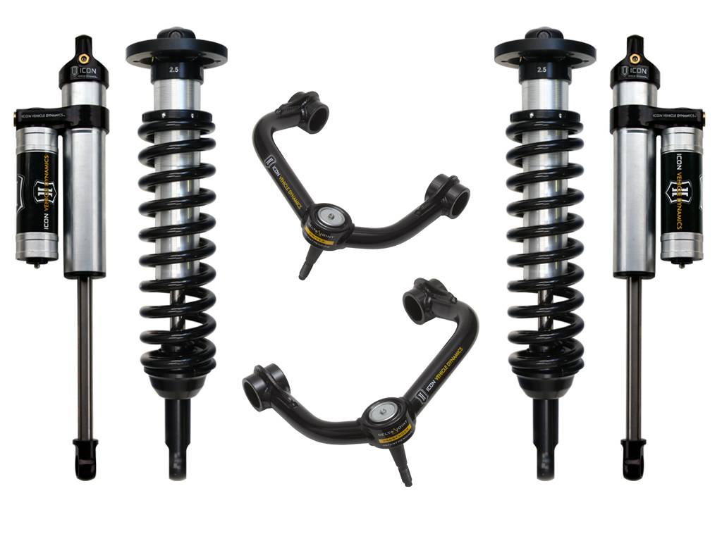ICON Vehicle Dynamics 2004-2008 Ford F150 suspension systems are designed with maximum performance and the serious driver in mind. ICON engineers’ primary focus is to increase wheel travel and damping ability, which translates into outstanding vehicle control and ride quality both on and off-road. The Stage 3 system includes vehicle-specific tuned 2.5” coilover shocks featuring an internal reservoir for exceptional cooling properties and ICON-engineered Eibach coil springs for superior vehicle “feel” through the range of travel. These coilovers are also height adjustable from 0-2.63” allowing the use of larger, more aggressive wheel and tire combinations. Tubular upper control arms on the F150 not only add strength and durability, but help retain factory alignment spec range increasing caster over stock. ICON 2.5 Series Piggyback rear shocks utilize a vehicle-specific valving that balances the performance of the truck from front to rear. 2.5" reservoir shocks ensure optimum performance by increasing the duration of consistent damping regardless of situation, keeping the shocks at a cooler operating temperature during heavy use. The ICON Vehicle Dynamics 2004-2008 F150 2WD Stage 3 suspension system is an excellent choice for those drivers looking to enhance the capabilities of their pickup on the road as well as in the dirt.