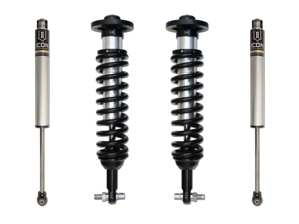 ICON Vehicle Dynamics 2014 Ford F150 2WD suspension systems are designed with maximum performance and the serious driver in mind. ICON engineers’ primary focus is to increase wheel travel and damping ability, which translates into outstanding vehicle control and ride quality both on and off-road. The Stage 1 system includes vehicle-specific tuned 2.5” coilover shocks featuring an internal reservoir for exceptional cooling properties and ICON-engineered Eibach coil springs for superior vehicle “feel” through the range of travel. These coilovers are also height adjustable from 0-2.63” allowing the use of larger, more aggressive wheel and tire combinations. ICON 2.0 Aluminum Series monotube rear shocks utilize a vehicle-specific valving that balances the performance of the truck from front to rear. The ICON Vehicle Dynamics 2014 F150 2WD Stage 1 suspension system is an excellent choice for those drivers looking to enhance the capabilities of their pickup on the road as well as in the dirt.