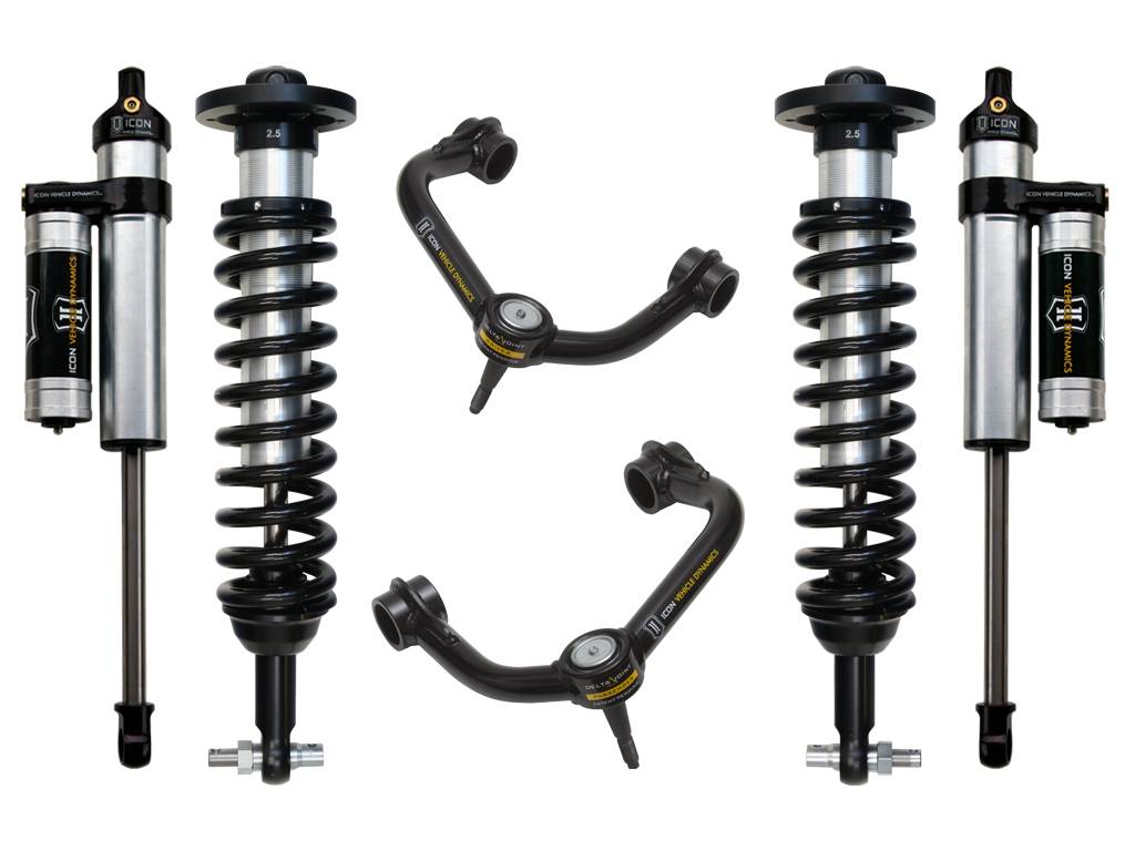 ICON Vehicle Dynamics 2014 Ford F150 2WD suspension systems are designed with maximum performance and the serious driver in mind. ICON engineers’ primary focus is to increase wheel travel and damping ability, which translates into outstanding vehicle control and ride quality both on and off-road. The Stage 3 system includes vehicle-specific tuned 2.5” coilover shocks featuring an internal reservoir for exceptional cooling properties and ICON-engineered Eibach coil springs for superior vehicle “feel” through the range of travel. These coilovers are also height adjustable from 0-2.63” of lift over stock allowing the use of larger, more aggressive wheel and tire combinations. Tubular Steel Delta Joint upper control arms on the F150 not only add strength and durability, but help retain factory alignment spec range increasing caster over stock. ICON 2.5 Aluminum Series Piggyback rear shocks utilize a vehicle-specific valving that balances the performance of the truck from front to rear. 2.5" reservoir shocks ensure optimum performance by increasing the duration of consistent damping regardless of situation, keeping the shocks at a cooler operating temperature during heavy use. The ICON Vehicle Dynamics 2014 F150 2WD Stage 3 suspension system is an excellent choice for those drivers looking to enhance the capabilities of their pickup on the road as well as in the dirt.