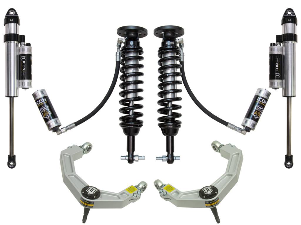 The ICON Vehicle Dynamics 2015-2020 Ford F150 2WD Stage 5 suspension system is the best choice for drivers looking to maximize the on and off-road potential of their trucks and will inspire confidence behind the wheel in nearly any situation. ICON engineers’ primary focus is to increase wheel travel and damping ability, which translates into outstanding vehicle control and ride quality both on and off-road. This system includes vehicle-specific tuned 2.5” coilover shocks featuring an external remote reservoir w/ CDCV for exceptional cooling properties and ICON-engineered Eibach coil springs for superior vehicle “feel” through the range of travel. These coilovers are also height adjustable from 1.75-3” of lift over stock allowing the use of larger, more aggressive wheel and tire combinations. Billet aluminum upper control arms on the F150 not only add strength and durability, but help retain factory alignment spec range increasing caster over stock. ICON 2.5 Aluminum Series Piggyback rear shocks w/ CDCV utilize a vehicle-specific valving that balances the performance of the truck from front to rear. 2.5" CDC reservoir front and rear shocks ensure optimum performance by increasing the duration of consistent damping regardless of situation, keeping the shocks at a cooler operating temperature during heavy use. ICON's CDC Valve upgrade is included in this stage front and rear for those desiring an easy way to tune the ride externally with 10 settings from soft to hard.