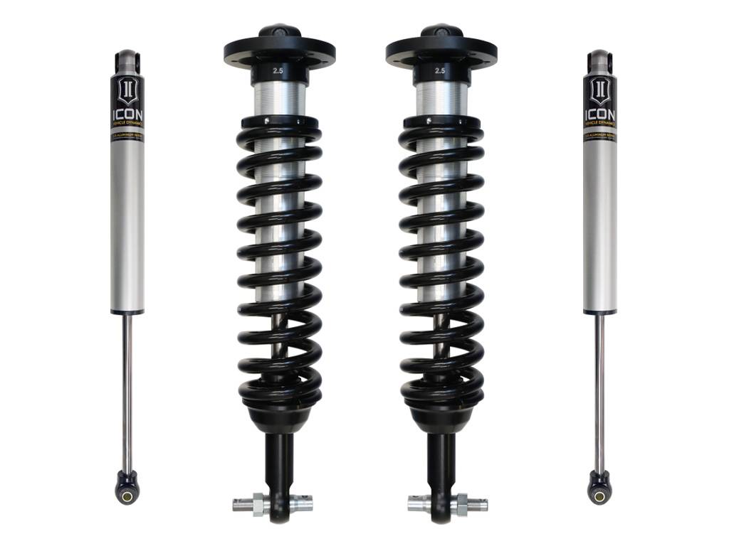 ICON Vehicle Dynamics 2021-UP Ford F-150 4WD suspension systems are designed with maximum performance and the serious driver in mind. ICON engineers’ primary focus is to increase wheel travel and damping ability, which translates into outstanding vehicle control and ride quality both on and off-road. The Stage 1 system includes vehicle-specific tuned 2.5” coilover shocks featuring an internal reservoir for exceptional cooling properties and ICON-engineered Eibach coil springs for superior vehicle “feel” through the range of travel. These coilovers are also height adjustable from 0-2.75” allowing the use of larger, more aggressive wheel and tire combinations. ICON 2.0 Aluminum Series monotube rear shocks utilize a vehicle-specific valving that balances the performance of the truck from front to rear. The ICON Vehicle Dynamics 2021-UP F-150 4WD Stage 1 suspension system is an excellent choice for those drivers looking to enhance the capabilities of their pickup on the road as well as in the dirt.