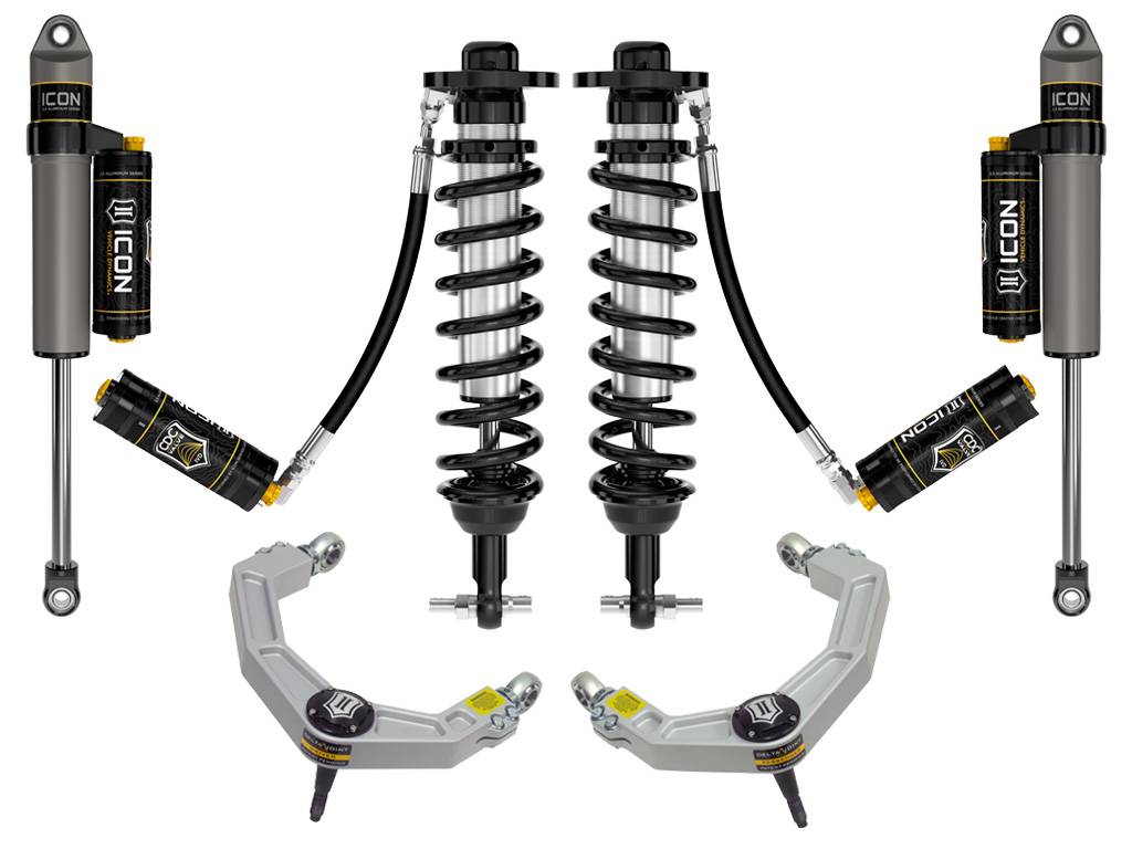 The ICON Vehicle Dynamics 2021 Ford F150 2WD Stage 5 suspension system is the best choice for drivers looking to maximize the on and off-road potential of their trucks and will inspire confidence behind the wheel in nearly any situation. ICON engineers’ primary focus is to increase wheel travel and damping ability, which translates into outstanding vehicle control and ride quality both on and off-road. This system includes vehicle-specific tuned 2.5” coilover shocks featuring an external remote reservoir w/ CDCV for exceptional cooling properties and ICON-engineered Eibach coil springs for superior vehicle “feel” through the range of travel. These coilovers are also height adjustable from 0-3” of lift over stock allowing the use of larger, more aggressive wheel and tire combinations. Billet aluminum upper control arms on the F150 not only add strength and durability, but help retain factory alignment spec range increasing caster over stock and offering additional caster/camber adjustability. ICON 2.5 Aluminum Series Piggyback rear shocks w/ CDCV utilize a vehicle-specific valving that balances the performance of the truck from front to rear. 2.5" CDC reservoir front and rear shocks ensure optimum performance by increasing the duration of consistent damping regardless of situation, keeping the shocks at a cooler operating temperature during heavy use. ICON's CDC Valve upgrade is included in this stage front and rear for those desiring an easy way to tune the ride externally with 10 settings from soft to hard.