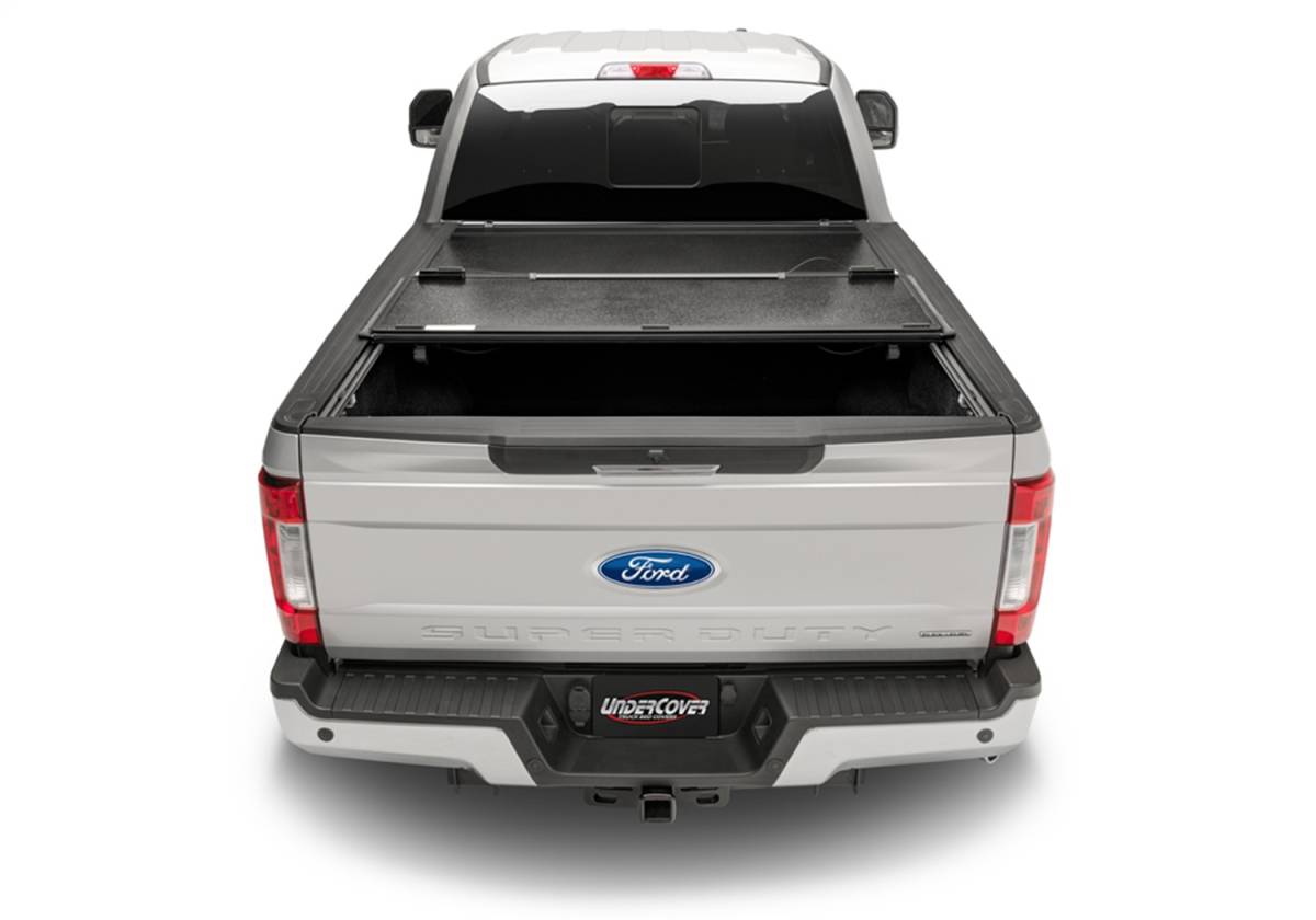 Introducing the next generation of folding covers -- the UnderCover Flex folding cover. Flex combines the best of both worlds, the security of a hard locking cover and convenience of a soft roll up cover. Constructed from the best materials available, Flex will withstand the abuse Mother Nature throws at it and keep coming back for more. Low Profile -- Ultra-low profile design rests inside the bed rails allowing for a very sleek look. Full Access -- Built in prop rods secure the cover allowing your truck to be driven with the cover fully open. Easy Removal -- Entire cover can be removed in seconds with no tools needed. Secure Design -- Plastic buckles and straps are included to secure the panels in the partially open position. FRP Composite Panels -- Lighter, stronger and higher dent resistance than aluminum. Weather Resistant -- Rubber seals and drain tubes channel water away from and out of the bed. Easy Clamp-on design. No other folding cover can match the Flex for versatility, security and function. Covered or uncovered, always an option with UnderCover.