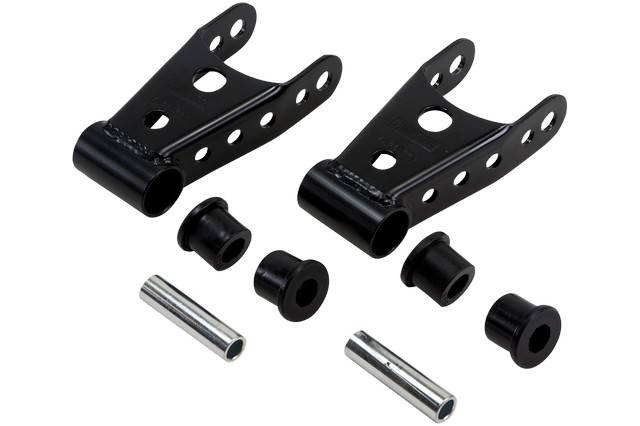 Belltech lowering Shackle kits, a simple, economical way to lower the rear of your truck 1, 2, or 3 inches to help give that leveled appearance. Belltech shackles are constructed from powdercoated, heavy gauge die stamped P&O steel featuring OEM quality vulcanized rubber bushings to insure a perfect fit and superior quality for a long, quiet maintenance free life.