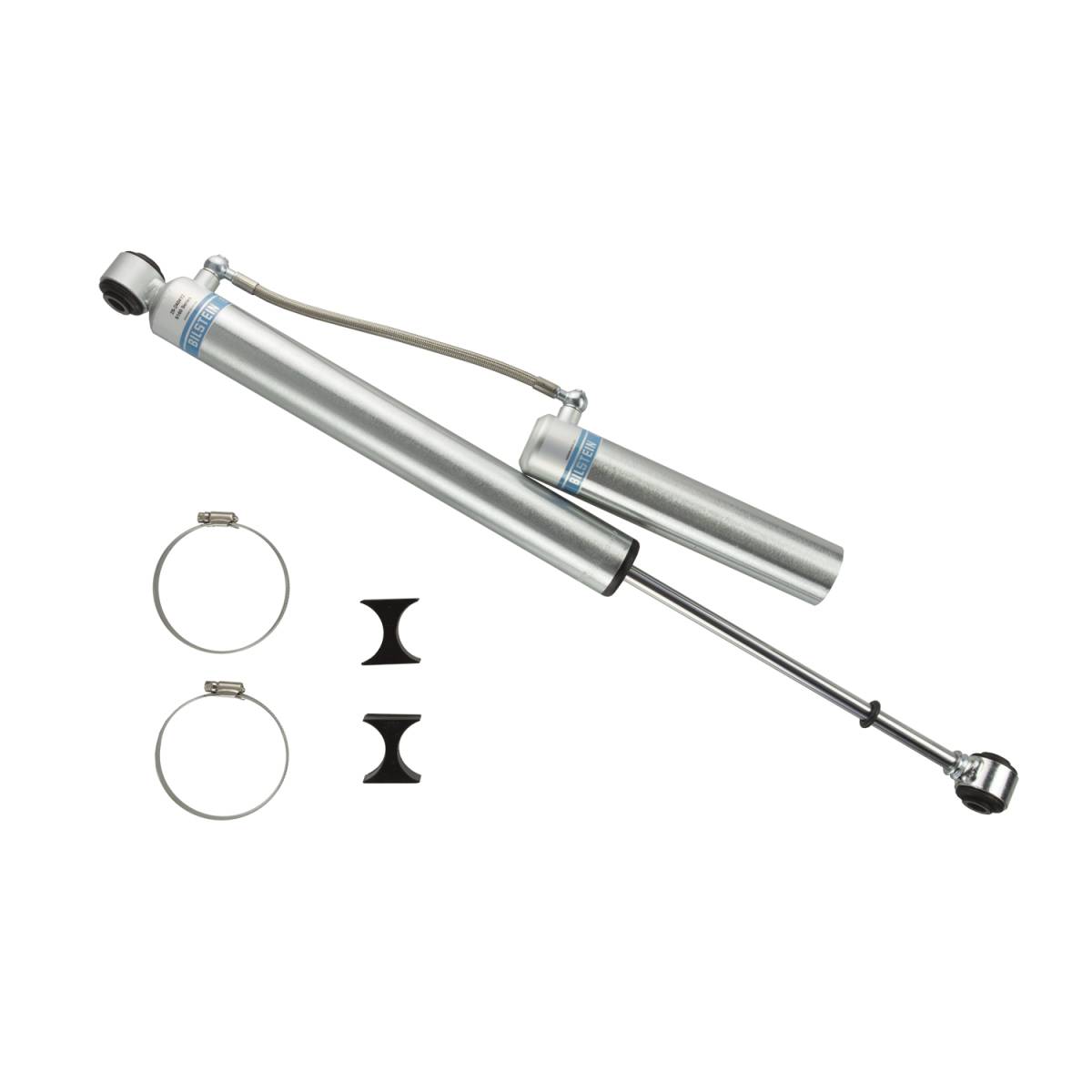 Bilstein B8 5160 remote reservoir shock absorbers are designed as a direct fit solution for lifted trucks and SUV’s. The remote reservoir will offer increased cooling capacity and wheel travel to optimize overall performance compared to a traditional shock absorber. These shock absorbers feature a monotube design for consistent fade free performance and utilize velocity sensitive digressive valve settings which are tuned for each specific application. Each shock absorber is fitted with a unique 360 degree swivel banjo hose fitting, providing a clean, low profile installation. B8 5160 remote reservoir shock absorbers will increase overall durability of your vehicle allowing you to conquer the harshest of off-road environments.