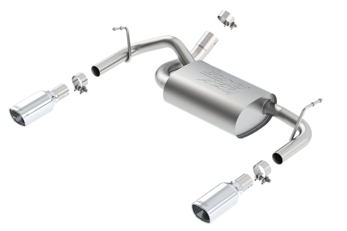 Features bright chrome on T-304 stainless steel tips. Borla Cat-Back & Axle-Back multi-core technology is designed to unleash hidden horsepower. Increased exhaust velocity adds power, driving excitement, fuel economy, and the distinctive Borla Sound of Power respected by motoring enthusiasts everywhere. Each system is built from premium T-304 stainless steel, superior to T-400 series knockoffs (such as 409), to give you the absolute best in performance and durability. Ultra-smooth mandrel bends ensure maximum flow & power, and precision computer-controlled CNC manufacturing ensures an accurate fit. Best of all, Borla stands behind every system with a Million-Mile Warranty. Just what you?d expect from the world?s most experienced (and most winning) exhaust brand.