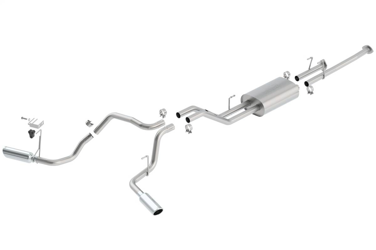 Features bright chrome on T-304 stainless steel tips. Muffler contains an internal H-Pipe for increased performance and improved sound. BORLA(r) Cat-Back(tm) & Axle-Back exhaust systems feature patented straight-through and multi-core technology to unleash hidden horsepower. Increased exhaust velocity adds power, driving excitement, fuel economy, and the distinctive BORLA(r) Sound of Power respected by motoring enthusiasts everywhere. Each system is built from premium T-304 austenitic stainless steel, superior to T-400 series knockoffs (such as 409), to give you the absolute best in performance and durability. Ultra-smooth mandrel bends ensure maximum flow & power, and precision computer-controlled CNC manufacturing ensures an accurate fit. Best of all, BORLA(r) stands behind every system with a Million-Mile Warranty. Just what you'd expect from the world's most experienced (and most winning) exhaust brand.
