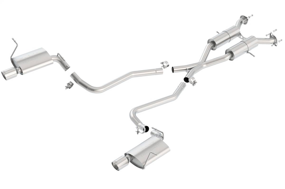 EXCEPT Vehicles With Through The Bumper Exhaust Tips. This system can be used with the factory skid plate. Features polished T-304 stainless steel tips. Borla Cat-Back & Axle-Back exhaust systems feature patented straight-through and multi-core technology designed to unleash hidden horsepower. Increased exhaust velocity adds power, driving excitement, fuel economy, and the distinctive Borla Sound of Power respected by motoring enthusiasts everywhere. Each system is built from premium T-304 stainless steel, superior to T-400 series knockoffs (such as 409), to give you the absolute best in performance and durability. Ultra-smooth mandrel bends ensure maximum flow & power, and precision computer-controlled CNC manufacturing ensures an accurate fit. Best of all, Borla stands behind every system with a Million-Mile Warranty. Just what you?d expect from the world?s most experienced (and most winning) exhaust brand.