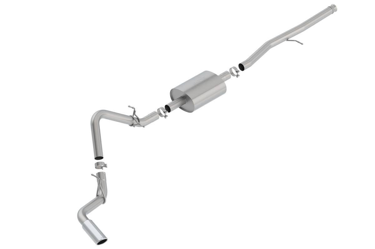The 140794 Cat-Back(tm) system by BORLA(r) is designed to fit Silverado and Sierra 1500 trucks that are NOT equipped from the factory with split rear exit exhaust. It is a side exit system featuring a Bright Chrome on T-304 stainless steel tip and the S-Type sound level. A Black Chrome on T-304 stainless steel tip is also available. Add Adapter 60706 For Crew Cab with Standard Bed (6' 7") 157" Wheelbase vehicles. Each system is built from premium, high-quality T-304 austenitic stainless steel, superior to T-400 to give you the absolute best in performance and durability. Ultra-smooth mandrel bends ensure maximum flow & power, and precision CNC manufacturing ensures an accurate fit. You can count on BORLA(r) to provide durability, performance, sound, and a Million-Mile Warranty.