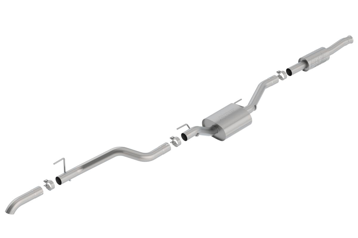This ATAK(r) Climber Cat-Back(tm) system (140810) is designed with high ground clearance in mind. It features a brushed T-304 stainless steel turndown tip and is the ideal system for off-roading, overlanding, or rock crawling. For those looking for an aggressive exhaust, the ATAK(r) delivers just that. It provides a much louder sound than stock and makes the 3.6L growl. Even with an aggressive sound, you can still expect a drone-free system. This system is specifically tuned for flow and sound on the Gladiator's 3.6L Pentastar engine. The systems are made using T-304 stainless steel to ensure that it can handle whatever you throw its way. For performance and sound on the trails, choose BORLA(r). Best of all, we stand behind every system with a Million-Mile Warranty, just what you'd expect from the world's most experienced (and most winning) exhaust brand., Climber High-Clearance System, Brushed T-304 Stainless Steel Turndown TipATAK Sound Level, No-Drone, Bolt-On Installation, T-304 Stainless Steel Construction, Million-Mile Warranty