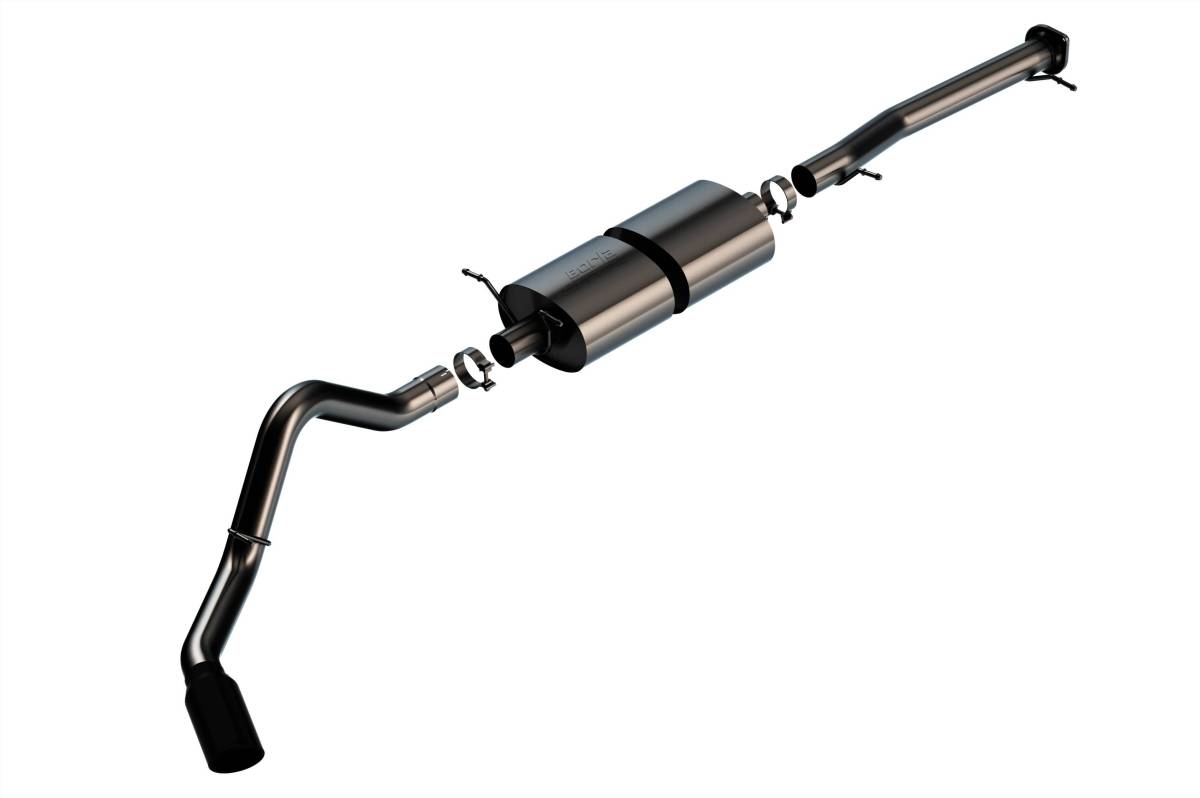 EXCEPT vehicles with Dual Rear Wheels. This system features a 5" black chrome finish on T-304 stainless steel tip. Using BORLA(r) Stainless Steel Polish p# 21461 is NOT recommended with these black chrome tips. We suggest cleaning the tips with hot water and a microfiber cloth. BORLA(r) Cat-Back(tm) and Axle-Back exhaust systems feature patented straight-through and multi-core technology designed to unleash hidden horsepower. Increased exhaust velocity adds power, driving excitement, fuel economy, and the distinctive BORLA(r) Sound of Power respected by motoring enthusiasts everywhere. Each system is built from premium T-304 stainless steel, superior to T-400 series knockoffs (such as 409), to give you the absolute best in performance and durability. Ultra-smooth mandrel bends ensure maximum flow & power, and precision computer-controlled CNC manufacturing ensures an accurate fit. Best of all, BORLA(r) stands behind every system with a Million-Mile Warranty. Just what you'd expect from the world's most experienced (and most winning) exhaust brand.
