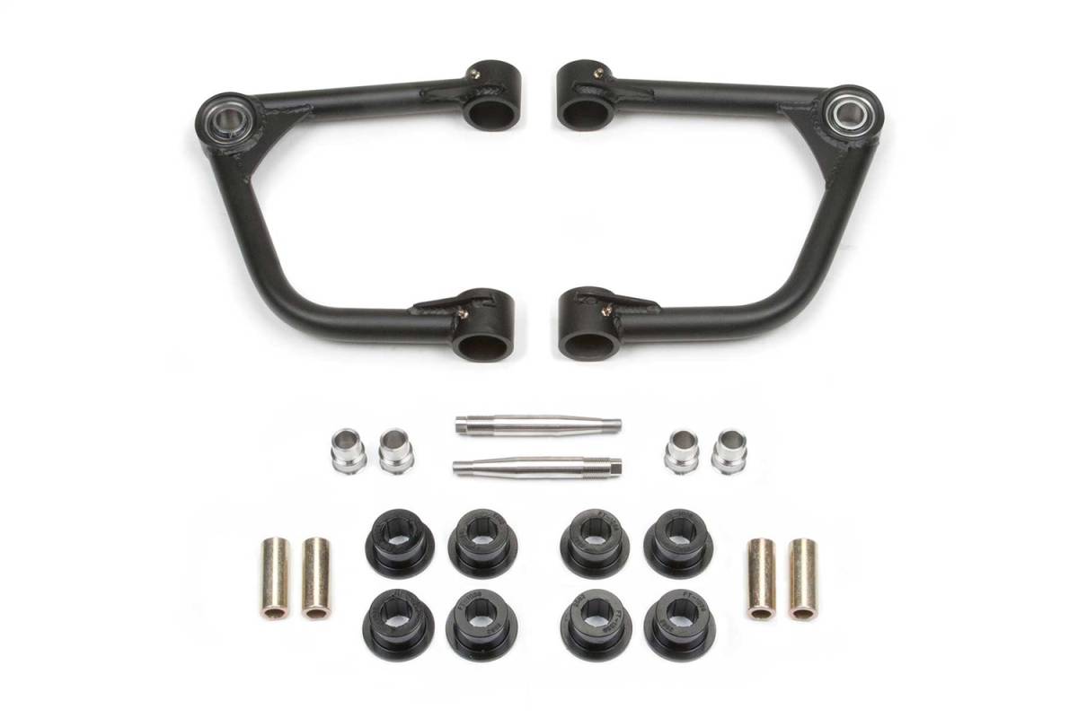 Fabtech's Uniball Upper Control Arms provide increased strength to the front suspension by replacing the stock ball joint upper arms that can become worn and eventually fail under aggressive offroad use. These heavy duty upper arms are designed for longevity in rugged offroad conditions. They also feature additional caster compared to stock upper arms for superior on road use with oversized tires. The top quality construction of these arms include .120" wall 1.50" OD 4130 Chromoly tubing and American made 1" FK Stainless PTFE lined Uniballs. The 17-4 Stainless Steel heat treated Uniball pins fit into the factory ball joint tapers without modification to the spindle for easy return to stock feature. Fabtech uses 17-4 Stainless steel for the misalignments that provide proper clearance of the 1" Uniballs throughout the travel range. On the frame side of the upper arms, there are quality urethane bushings that help reduce road noise while providing longevity. Fabtech's Uniball Upper Control Arms are an excellent upgrade to stock or lifted suspension systems for drivers that demand the best for their vehicle.