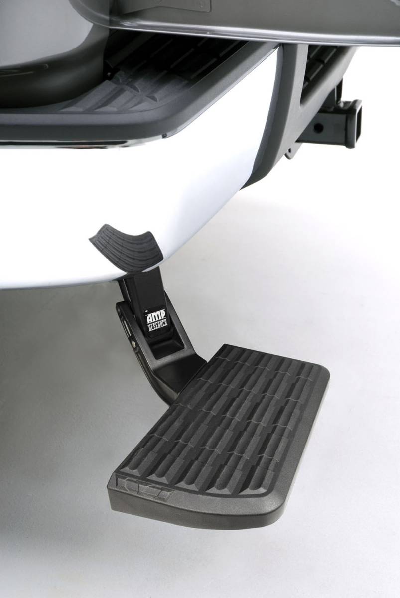 Go ahead and step on it. Bedstep is a real time saver. Not to mention knee and back saver. Strong and rugged, this non-slip, retractable bumper step quickly flips down with the nudge of a foot providing a faster, easier and safer way to load or unload your pickups cargo. Supports up to 300 lbs. Frame mounts under the rear bumper so it works even with an open tailgate or when towing.