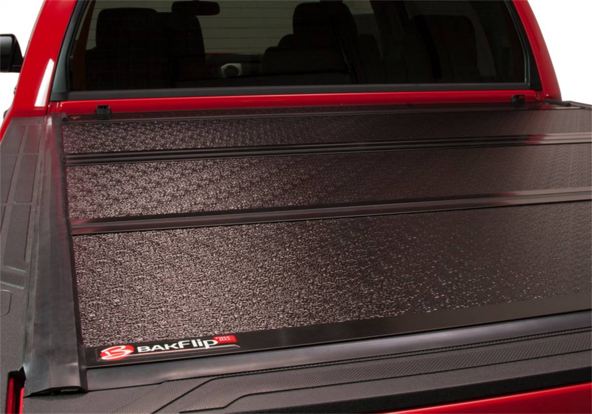 The BAKFlip FiberMax is an aluminum hard folding truck bed cover with an FRP (Fiberglass Reinforced Polymer) surface, making the cover dent, scuff and ding resistant, as well as cooler to the touch. Its tough aluminum substructure, robust hinge design and patented slam latch system make the FiberMax an easy-to-use, dependable cover that is built to last.