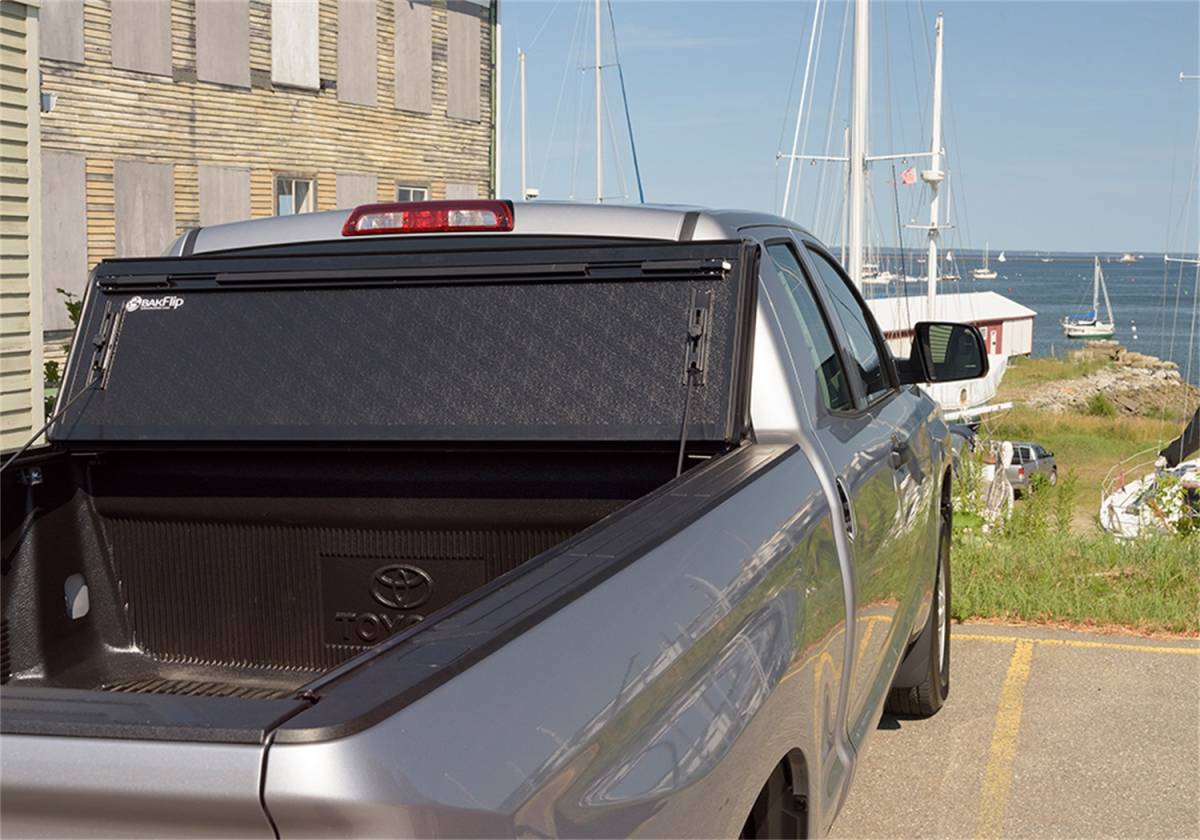 The BAKFlip G2 hard folding truck bed cover is the smartest investment when your job calls for a cover that offers full bed access when you need it, and maximum theft protection when you don't. The all-new integrated buckle system allows you to drive with your cover folded, flipped up or closed. Our patented latch system is concealed under the tonneau cover -- simply lock your tailgate to secure the contents of your truck bed. The G2 is a perfect cargo management solution and compatible with almost any truck bed accessory.