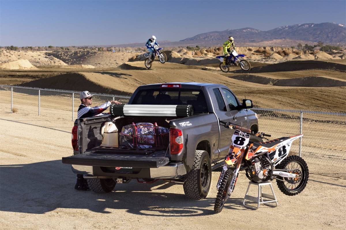 The Revolver X2 hard rolling truck bed cover features exclusive automatic rotational locking rails that secure the cover the entire length of the bed on each side. This hard aluminum roll-up cover easily rolls up with one-handed operation and allows use of every inch of the truck bed without blocking your rear window. This cover does it all with unrivaled strength, security and style.